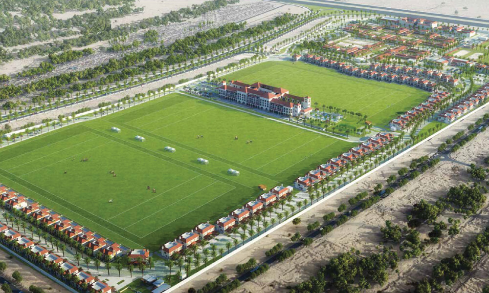 Al Habtoor Polo Resort & Club is an exclusive equestrian community in the heart of DubaiLand, blending luxury living with the elite sport of polo. Spanning 6 million sq. ft., the development features four international-standard polo fields, a modern riding school, and 500 premium stables — making it a haven for equestrian lovers.