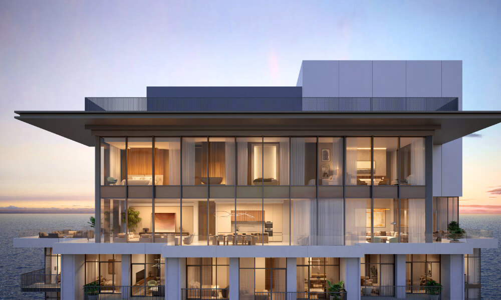 - Waterfront Living – Direct seafront address offering uninterrupted panoramic views of the Arabian Gulf.