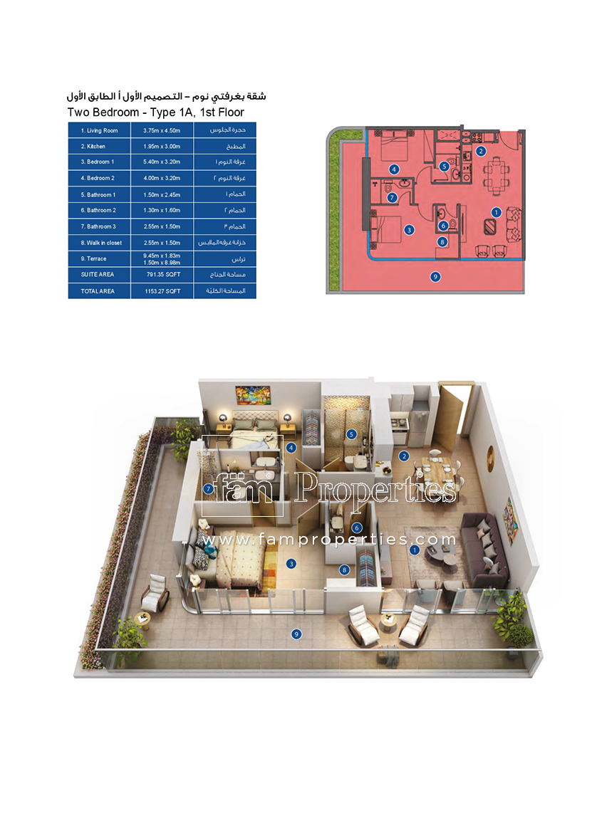 - 2 Bedroom: AED 1,376,000 – 1401,300