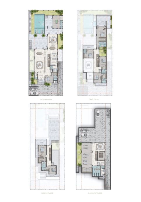 Villas with 6 and 7 bedrooms are available in the upscale development, with property sizes ranging from 11,317 to 17,531 square feet. On the basement and ground levels, Cavalli Estates Villas in DAMAC Hills will have a choice of five or twelve parking spaces.