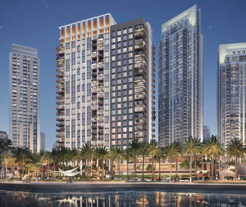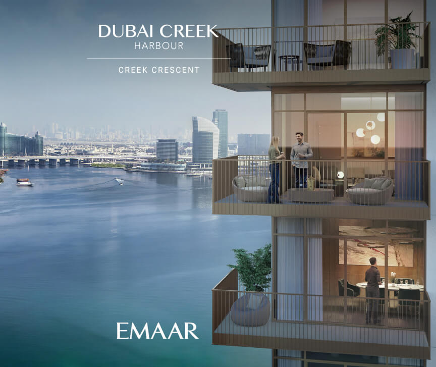 Come home to sophisticated urban living at Creek Crescent. This development blends high-end waterfront living with elegant modern design and exceptional finishing. Choose from 1, 2, and 3 bedroom apartments offering stunning views of Creek Island. The community features a fully-integrated transportation system, ensuring seamless connectivity throughout Dubai Creek Harbour.