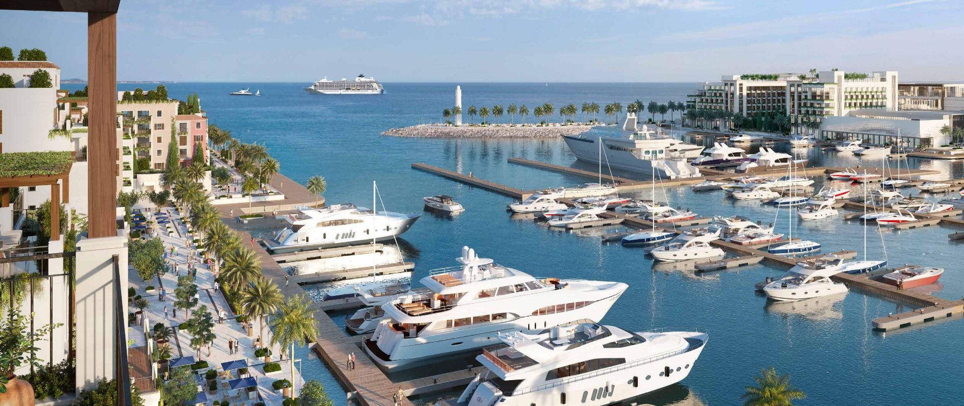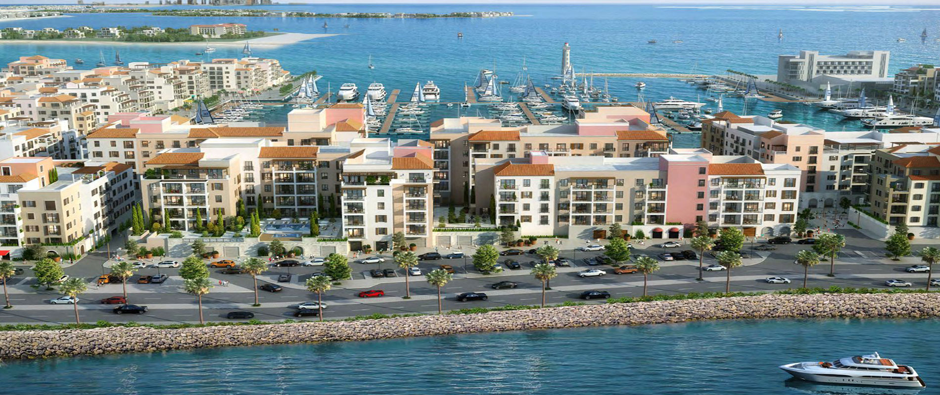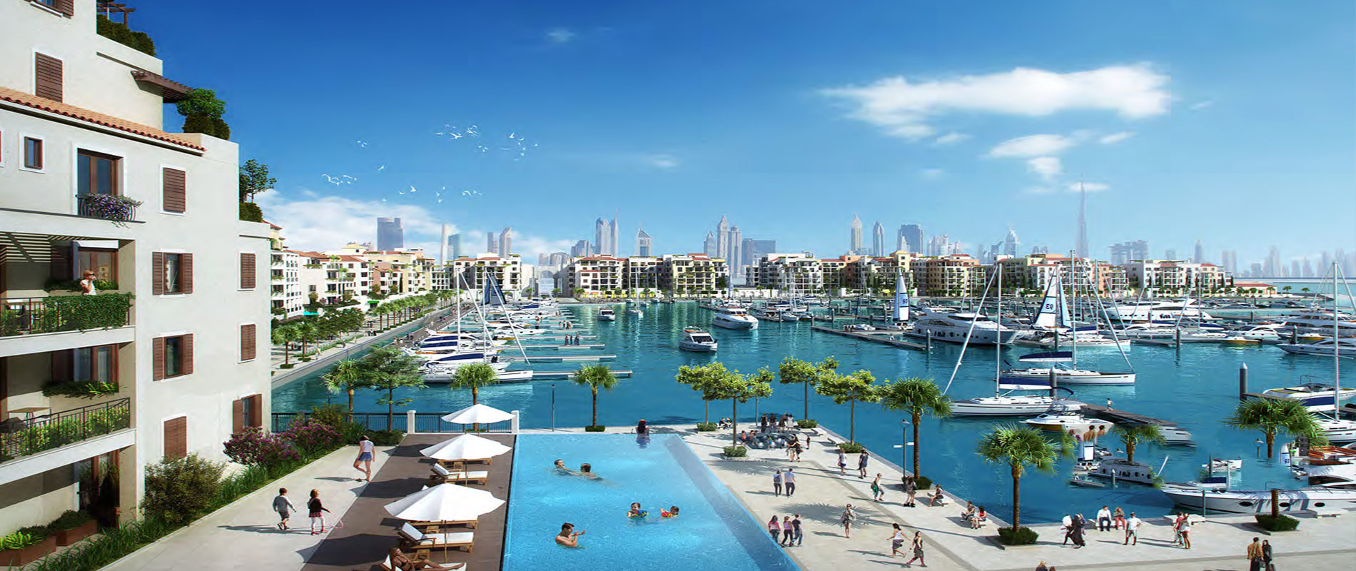 Residents can expect +190 berth marina and yacht club, seaside and marina promenades overlooking Pearl Jumeirah, controlled vehicle access, private landscaped terraces, and more.