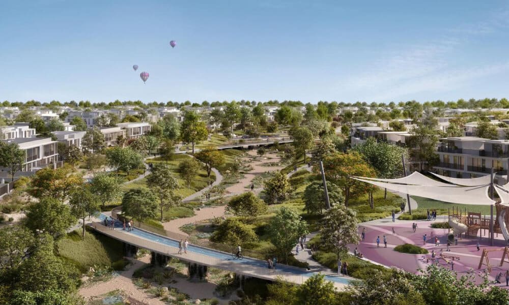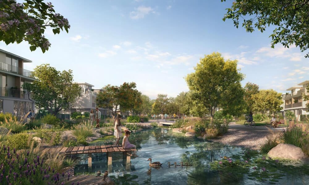 Each villa includes a striking double-height foyer, a semi-closed fully fitted kitchen, and expansive living and dining areas that maximise natural light and openness. The community offers lifestyle-rich amenities such as a meandering river, sports courts, themed play zones, a dog park, valley trails, and riverside sunken seating lounges—creating a harmonious blend of leisure, nature, and family living.