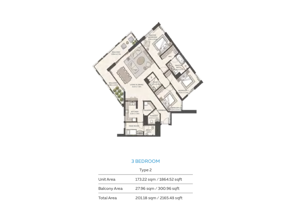 Unit Features: Spacious balconies with views of Expo City Dubai, floor-to-ceiling windows, separate laundry/storage rooms, built-in wardrobes in all bedrooms.