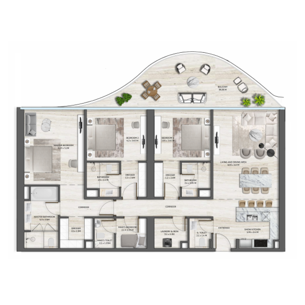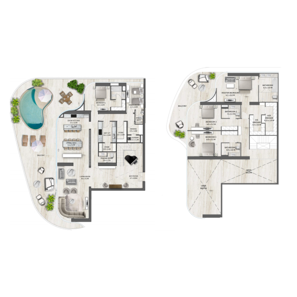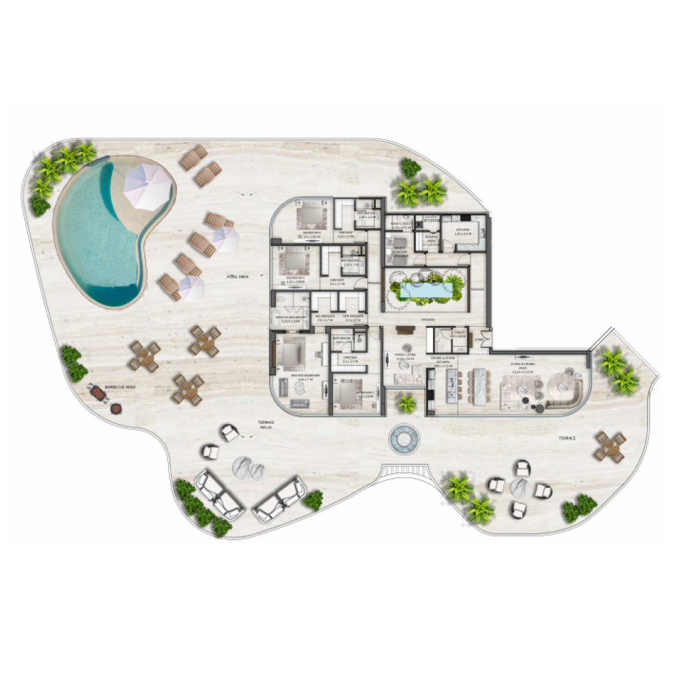 This premium development is strategically positioned on the West Crescent of Palm Jumeirah, in close proximity to renowned landmarks such as The Palm, Th8 resort, and Jumeirah Zabeel Saray. Its prime location on this iconic man-made island offers breathtaking views of Palm Jumeirah, the Arabian Gulf, Bluewaters Island, the Burj Al Arab, the famous Downtown Dubai skyline, and Dubai Marina.