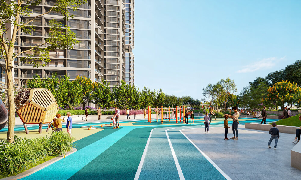 Integrated Lifestyle Podium: 11-floor shared podium featuring an urban park and communal amenities