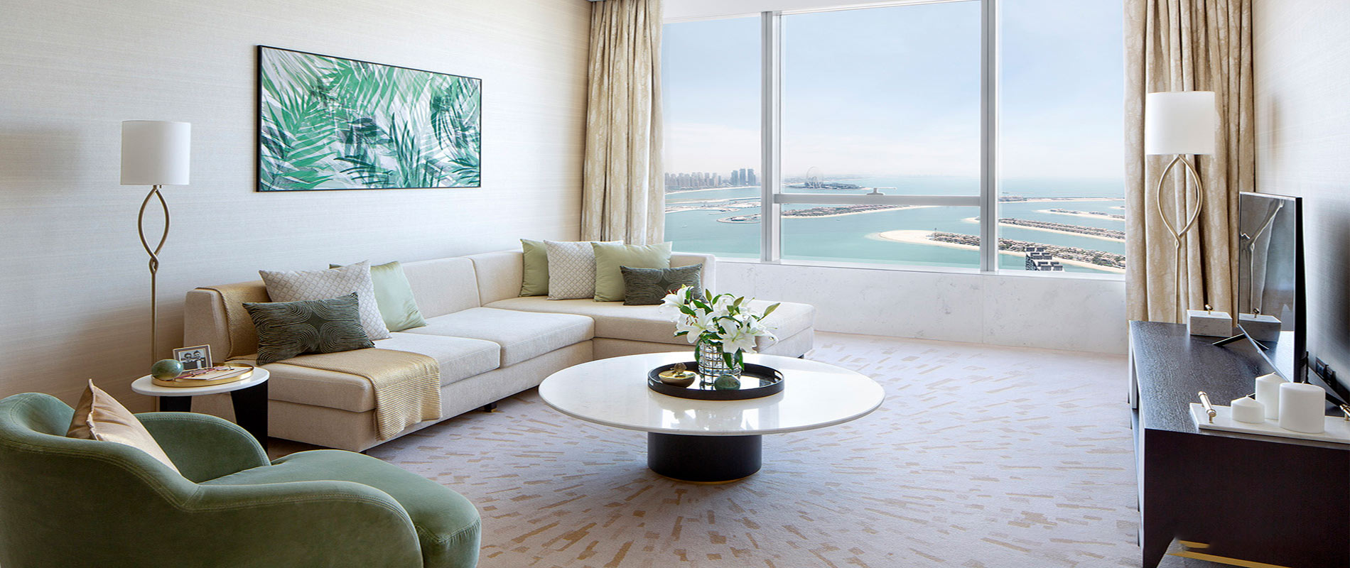 The Palm Tower is home to the prestigious 5-star St. Regis Dubai hotel, occupying the first 18 floors. This section consists of 290 hotel residences where owners can indulge in the opulence and services of a world-class hotel, including access to a spa, clinic, beauty salon, dry cleaning and laundry services.